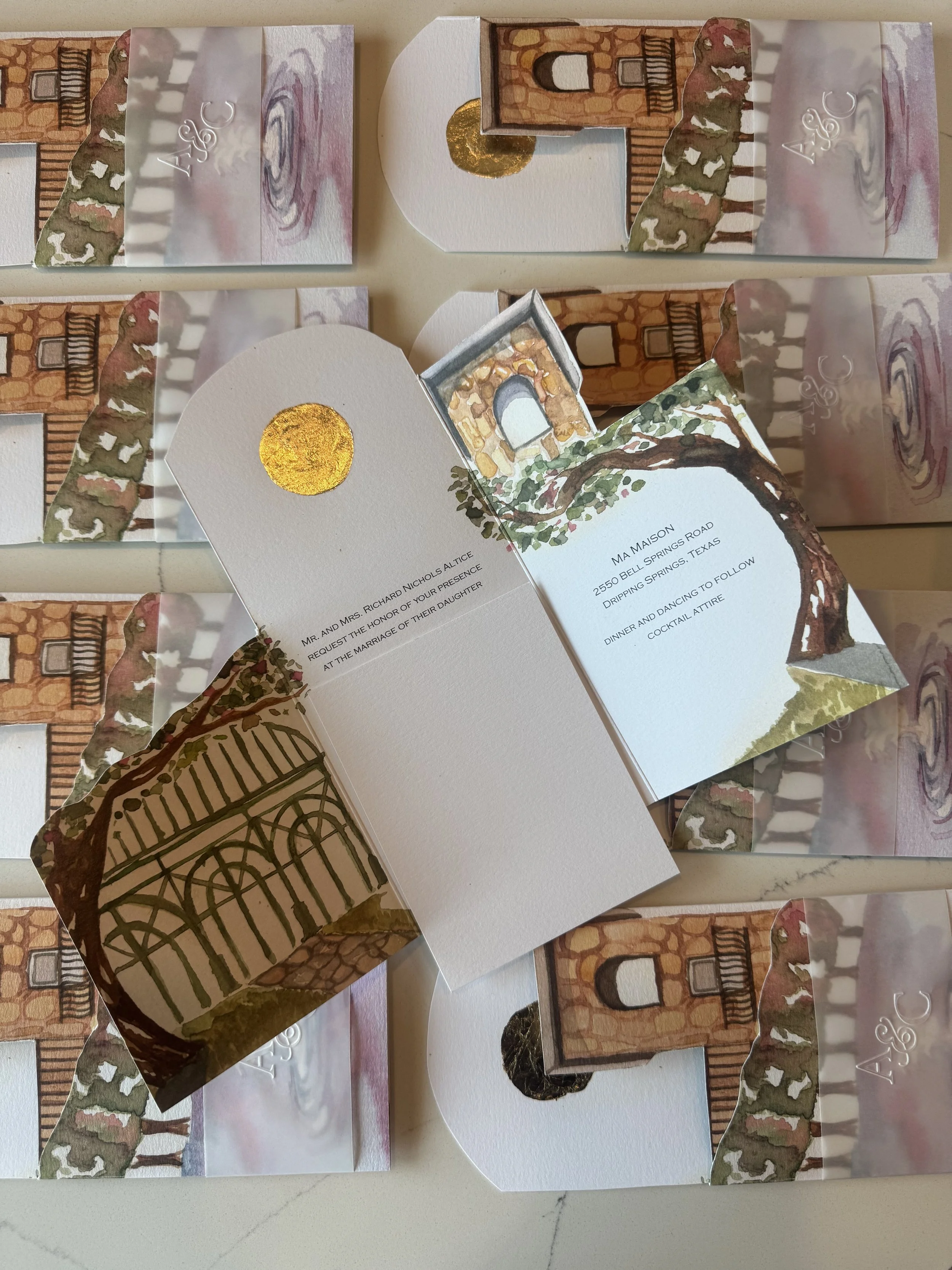 Each invitation design begins as a single, hand-painted watercolor artwork. This original piece is then digitized and prepared for printing so you can create as many invitations as you need.