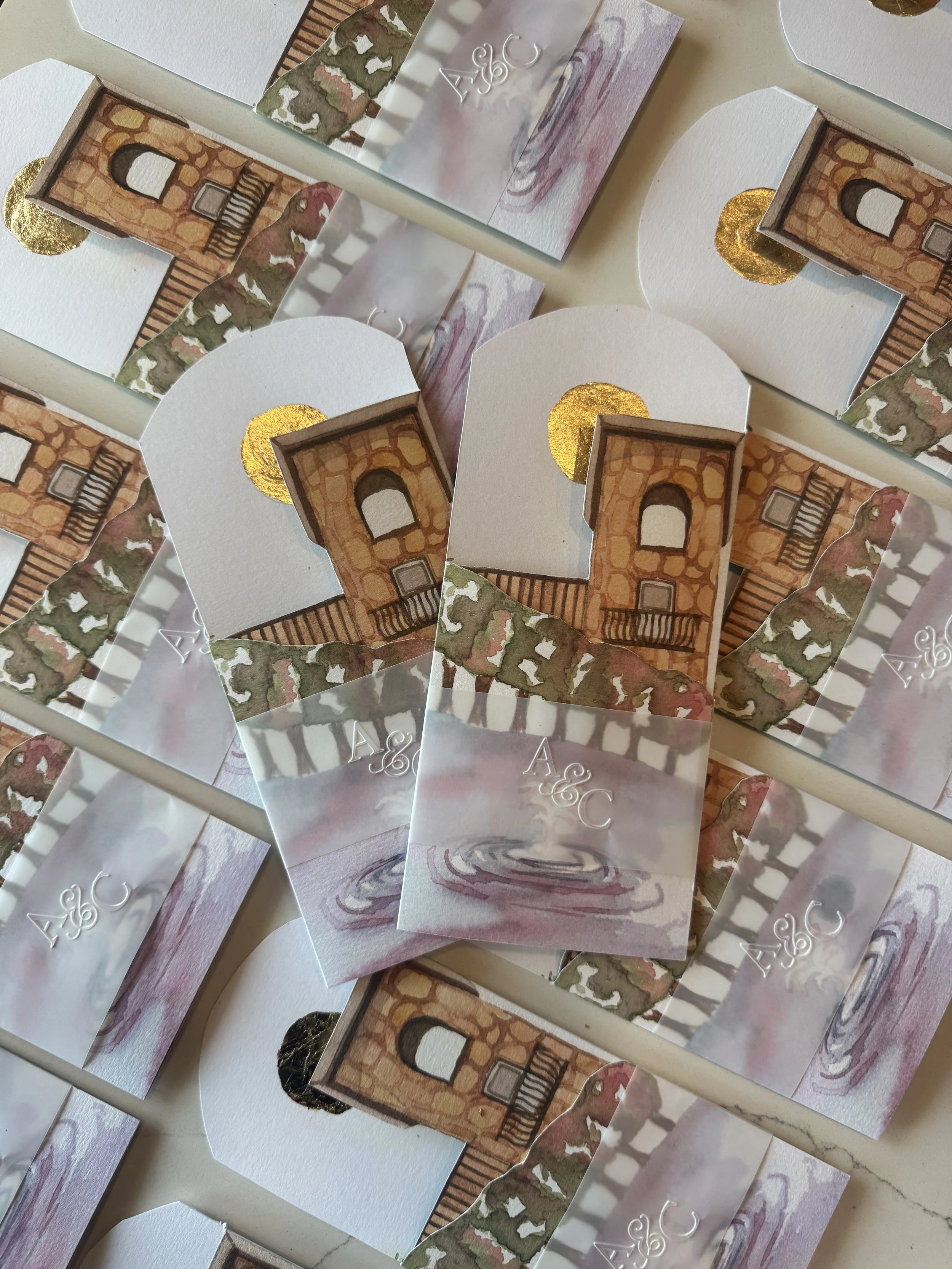 I hand-paint a custom watercolor design inspired by your venue and aesthetic. Each piece is created with care and attention to detail.Refinement & Final Artwork