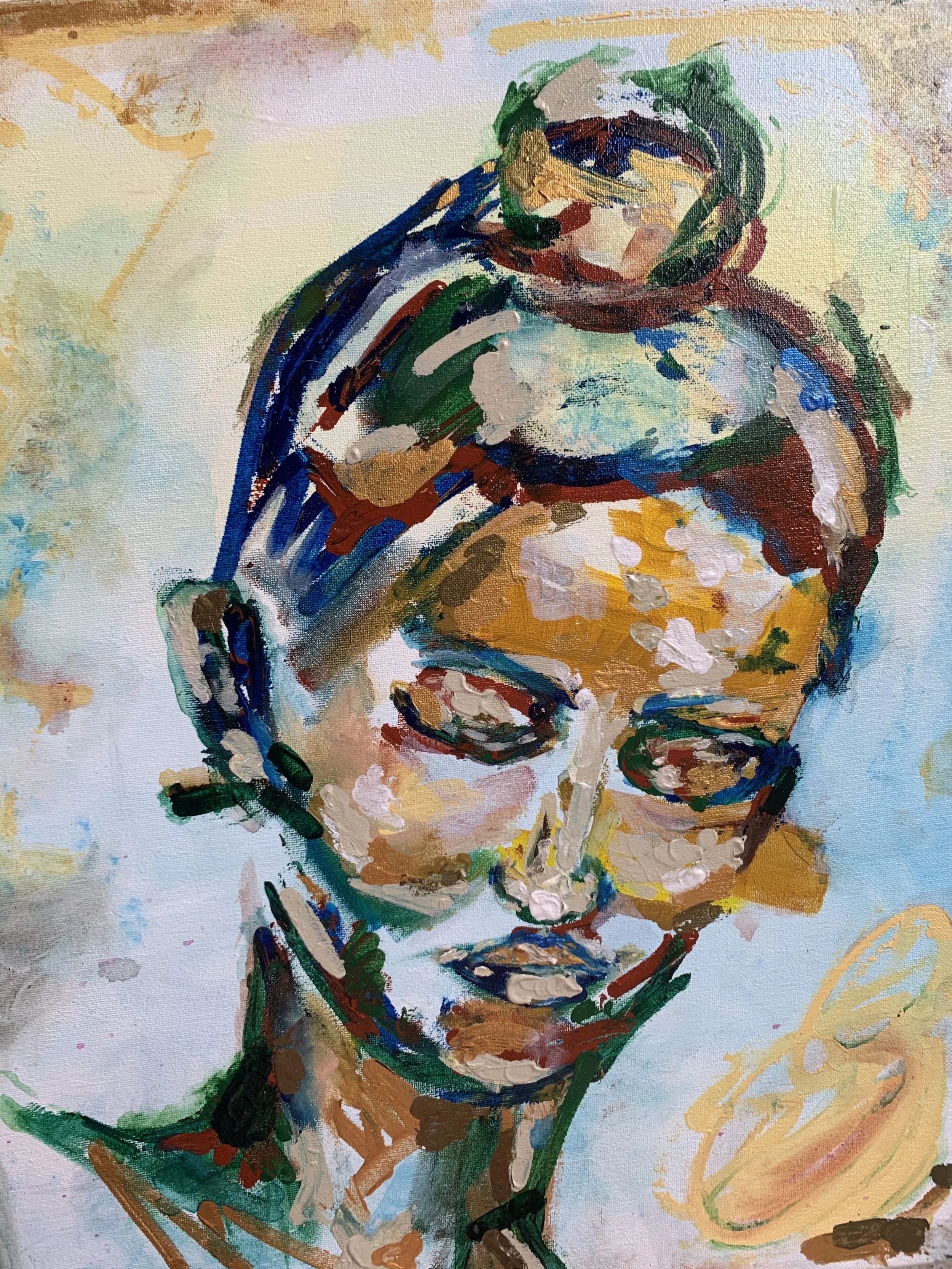 This use of color, coupled with the free-flowing brush strokes work together to bring the painting to life, evoking the subject's very spirit and creating an emotional reaction on the part of the viewer. The subject of the painting has her eyes cast downward and away for the viewer. This aspect of the painting makes for a very intriguing/mystifying mood, which makes me wonder what she is thinking or planning or remembering.